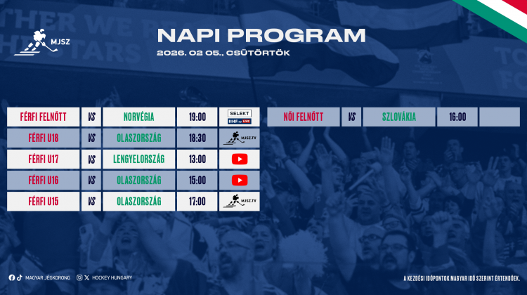 Oslóban zárja a Nemzetek Európai Kupája első kiírását a férfi felnőttválogatottunk, amely a házigazda Norvégiával kezd csütörtökön – aztán pénteken következik Ausztria. A mérkőzések az IIHF.TV-n lesznek elérhetőek, illetve Magyarországon a Telekom-előfizetéssel rendelkezőknek a Selekt kínálatában.