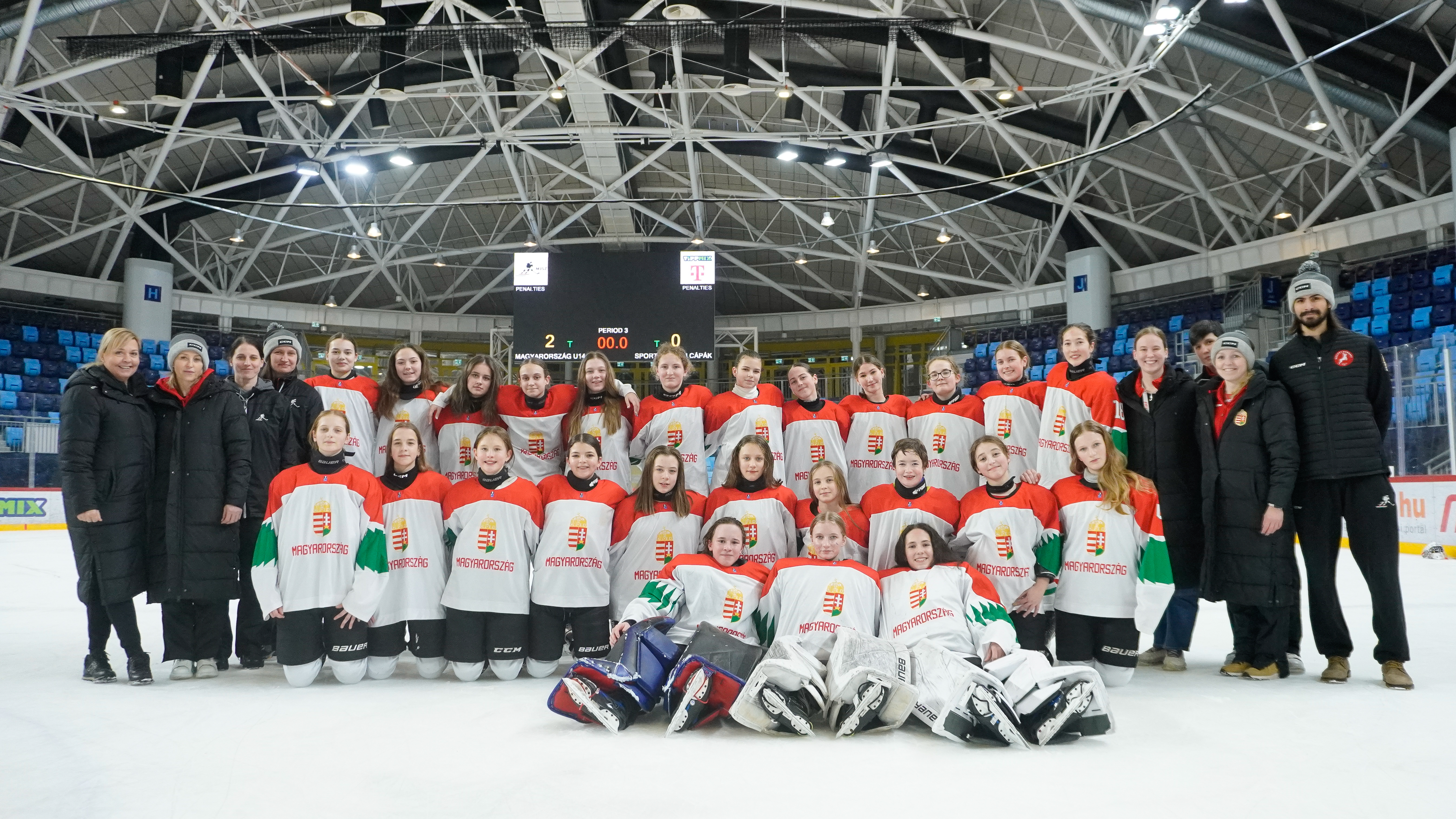 A női U14-es tehetséggondozó csapat tagjai múlt csütörtökön és pénteken készültek együtt a Tüskecsarnokban, az összetartás végén pedig megmérkőztek a Sportországi Cápák korosztályos csapatával. A meccset a nemzeti együttes nyerte 2-0-ra.